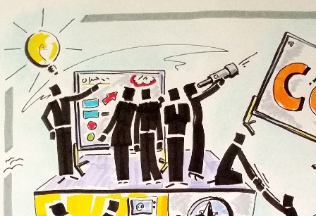 combinar, en grupos grandes, efectos espectaculares de cooperación con mucha emoción. Tenemos muy buenas experiencias con grupos de hasta 120 personas. Pueden repartirse entre varios “grupos de construcción” diversas sub-tareas, las cuales son parte de una imagen general. Para el carácter de la tarea no existen límites.